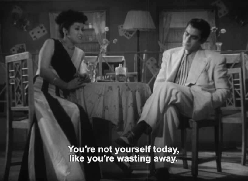 I had never seen this film before, but it does not disappoint. Kurosawa puts two unlikely allies into an interesting situation and sets them off. Mifune is a legend even in this film. You can see his struggle in every scene. Whether he’s playing a tough yakuza, or playing sick and barely conscious, you can see how scared he is. Not just of dying, but of uncertainty in his position. When his fears come to pass when Okada comes back and takes back over, we see how hard he fights to convince everyone he’s fine. During his bender, we have a musical scene in a club where Matsunaga is barely conscious, either from drink or illness we’re not sure(probably both). When Okada gets up and dances, Matsunaga feels he must match him. He grabs a woman and exclaims: “You must act well to feel well!” Then dances up a storm. The makeup helps here as well, as Matsunaga looks essentially like death.