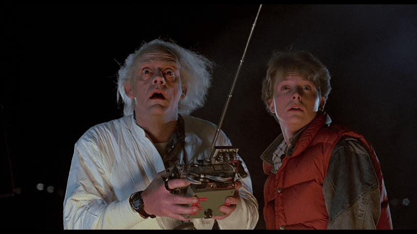 The set up is simple. Doc wants Marty to film his latest experiment in a mall parking lot late at night. It’s been clear from the start of the film that Doc Brown isn’t a reputable scientist. He’s presented as more of a tinkerer and inventor than a professional scientist. He reveals the time machine, the classic Delorean that we’re all familiar with.