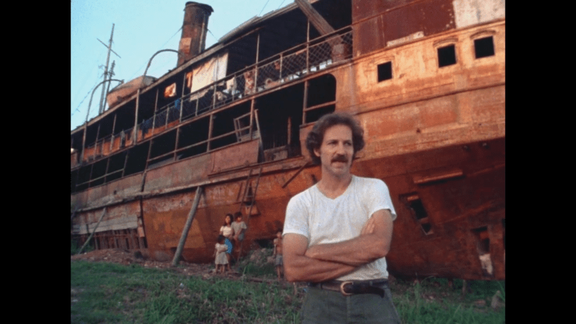 The film begins by discussing Herzog’s first attempt to complete the film. He built a small jungle camp in Brazil, near two rivers that were close enough to drag the boat across, just like Fitzcarraldo did. Unfortunately, his camp is too close to a contested border, and he gets caught up in a political dispute that forces him to move his camp before it gets violent. He ends up with two shooting locations about 1500 miles apart. One in Iquitos, the city Fitzcarraldo wanted to bring opera to, and a remote jungle location. Even with fantastic infrastructure, this would be a challenge to navigate, but in an undeveloped jungle, it becomes nearly impossible.