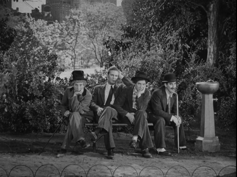 The Marx Brothers got their start as vaudevillians, back when that was a thing. Their act was built on stage performance with a variety show. Comedy was one thing, but singing, dancing and music were also on the agenda. In this film, we have an entire sequence of Chico and Harpo playing music. They both play piano, and Harpo plays the harp. But they don’t lose the comedy or showmanship. Chico’s piano performance is all comedy, as is Harpo’s, regardless of how skilled a musician they are.