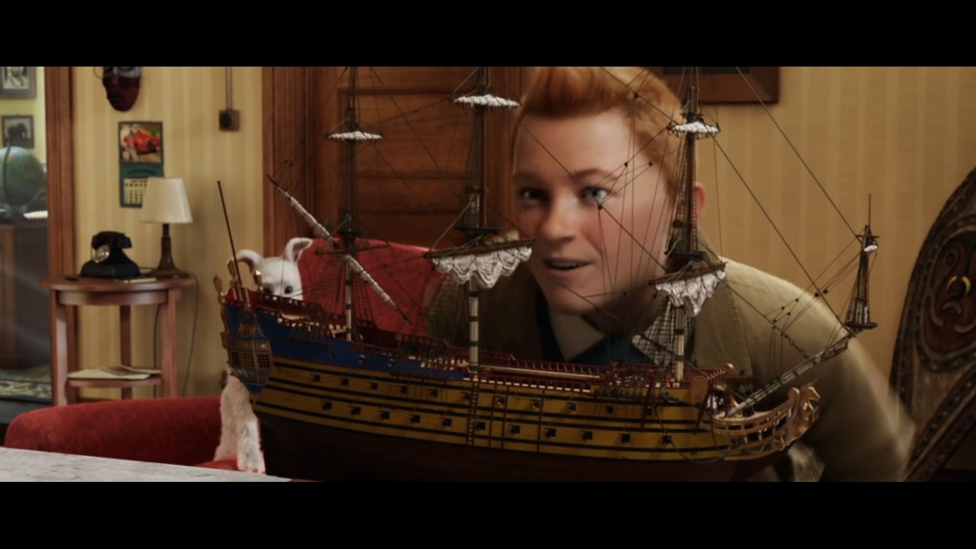 The story ramps up right away, with Tintin finding the ship within the first scene, and us meeting the villain, Sakharine, immediately after. It sets up the mystery fairly well, and we see Tintin researching the case. The mystery of the film is also the mystery of this ship model, the Unicorn.