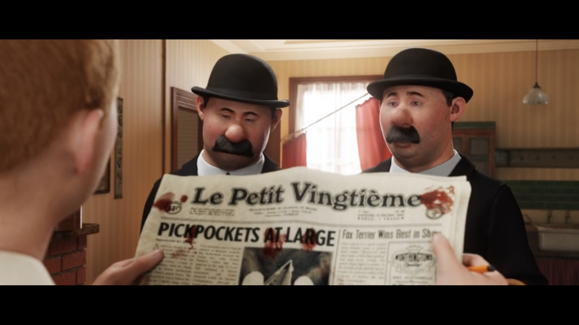 Where the movie falls down, I think, is that we don’t get enough breaks in the action to catch our breaths. And when it does, it focuses too much on comic relief. The character archetypes in the film are hero, villain, and comic relief. But there’s one hero, one villain, and then several comic relief characters. We first meet Thompson and Thomson, two Scotland Yard detectives who are completely helpless and clueless. These two characters are voiced by Nick Frost and Simon Pegg, and they make the most of the comedic credentials. The characters are funny, and they contribute to a couple of plotlines, but they perhaps take up too much screentime.