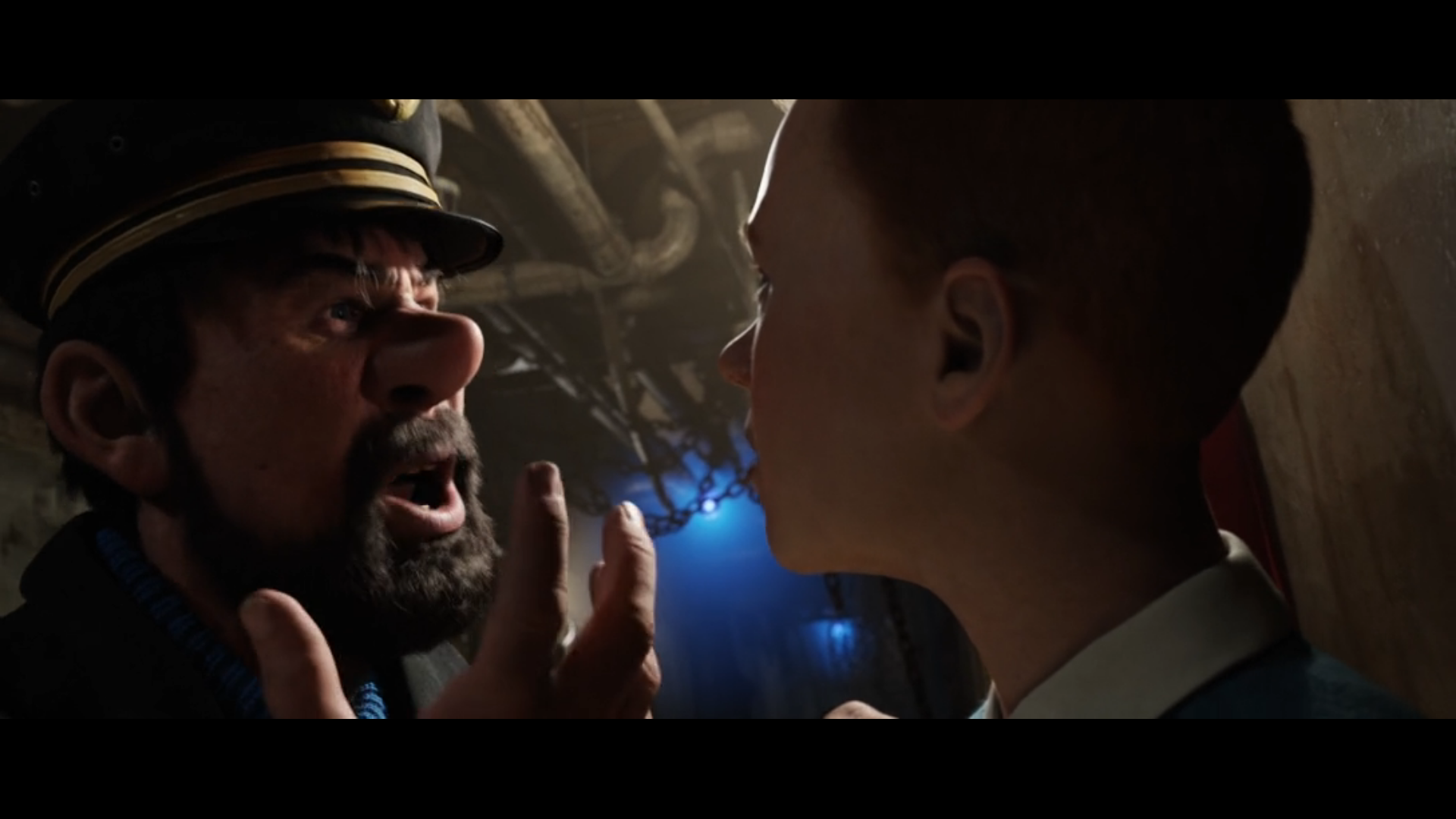 The film uses Captain Haddock’s character model as Sir Francis, and though he’s masked, it does a poor job of hiding that Red Rackham is Sakharine’s character model. It’s revealed later that Sakharine is a descendant of Red Rackham. His motivation isn’t just finding the treasure, but getting revenge for his ancestor.