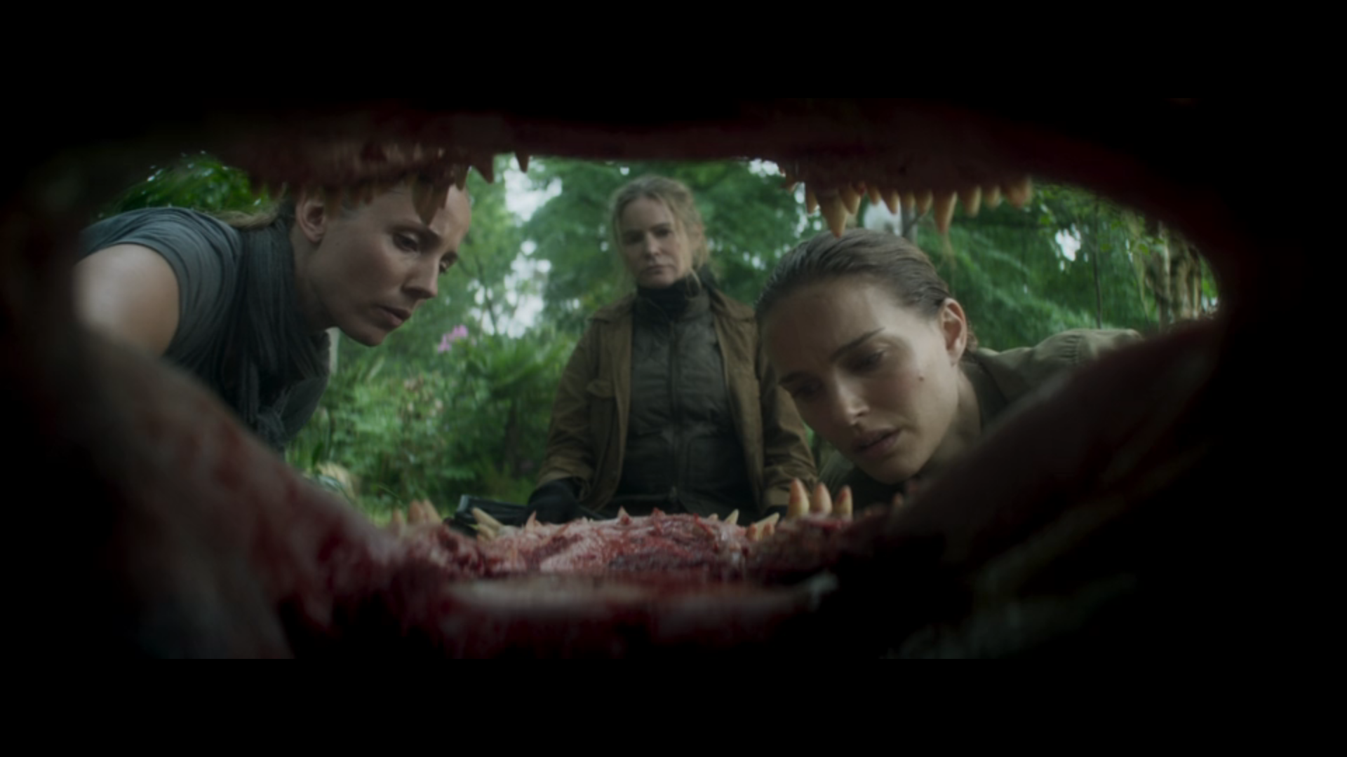 The next major plot advancement comes when they discover the original base used to study the shimmer. It’s here where the films horror elements really begin to take hold. Garland makes effective use of body horror when the team finds a video left by the previous team, the one that included Kane.