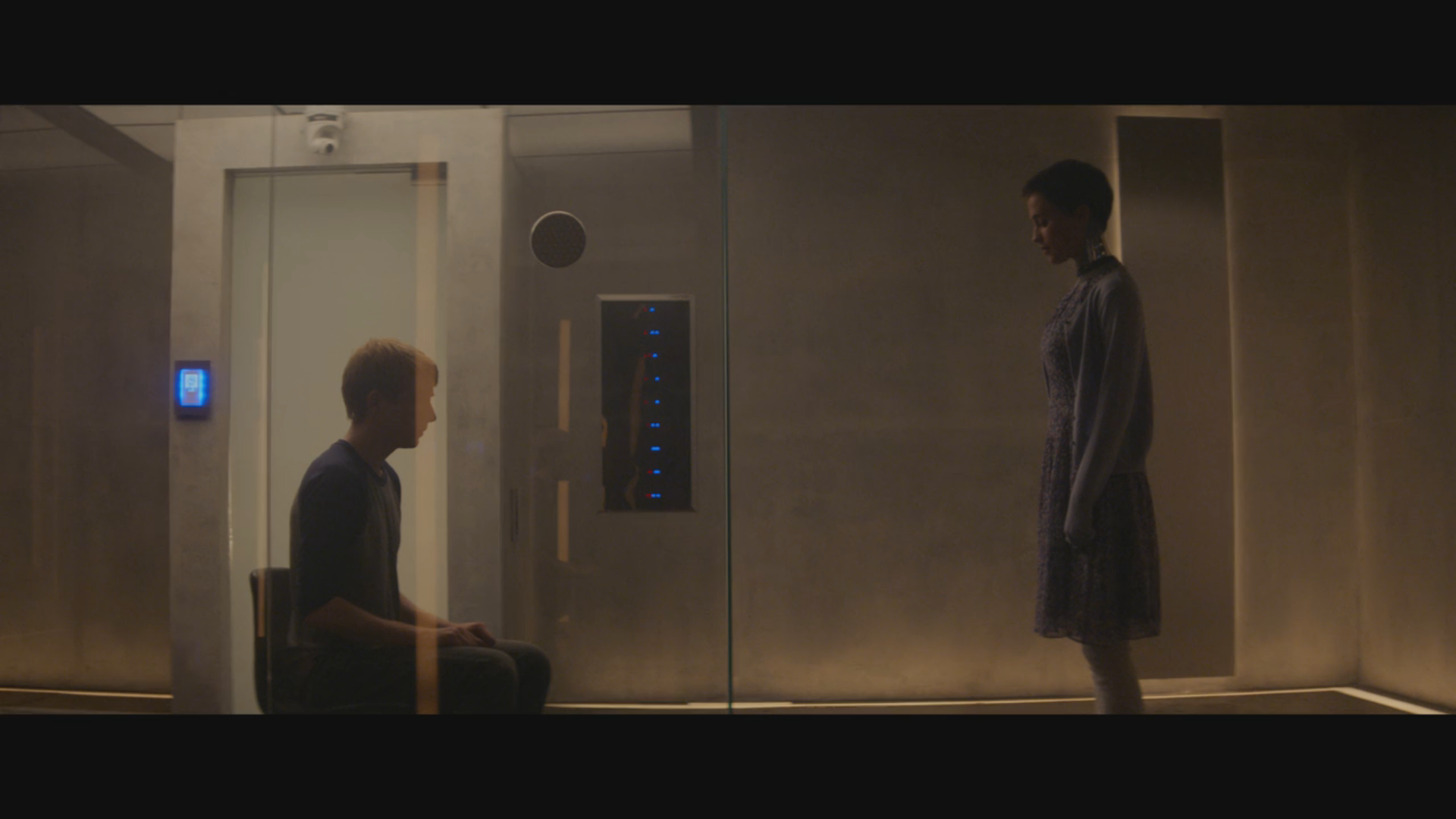 Of course, as technology has advanced, this test turned out to be somewhat simplistic, and didn’t envision human-like robots. But in this version of the test, Caleb is asked to sit and have a conversation with Ava, the AI, in her room, while he is behind glass.
