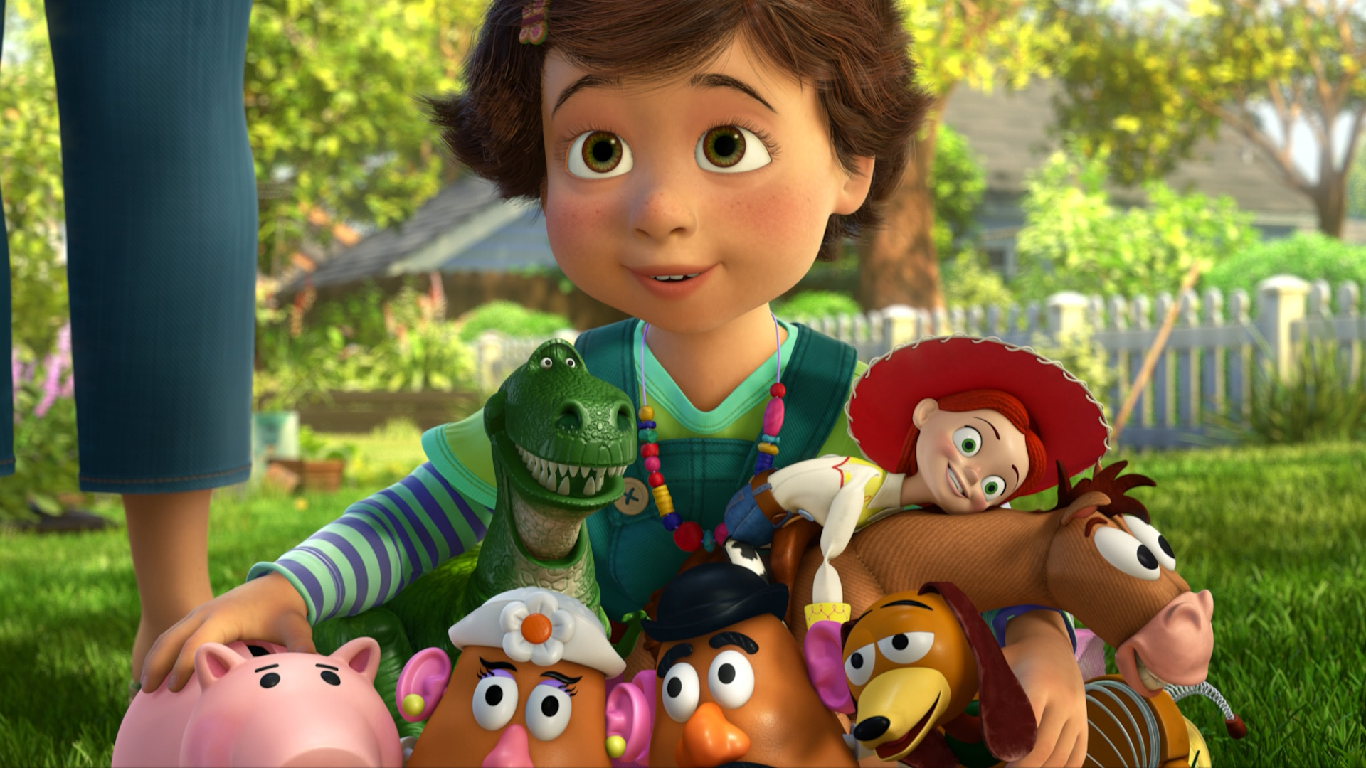 As he leaves, Andy stops by a house, with a friend of his mothers. We see a small girl playing there, Bonnie from the earlier scenes where Woody met the new toys. In the scene, Andy offers all of his old toys to her. He introduces each of them to her, and they play together.