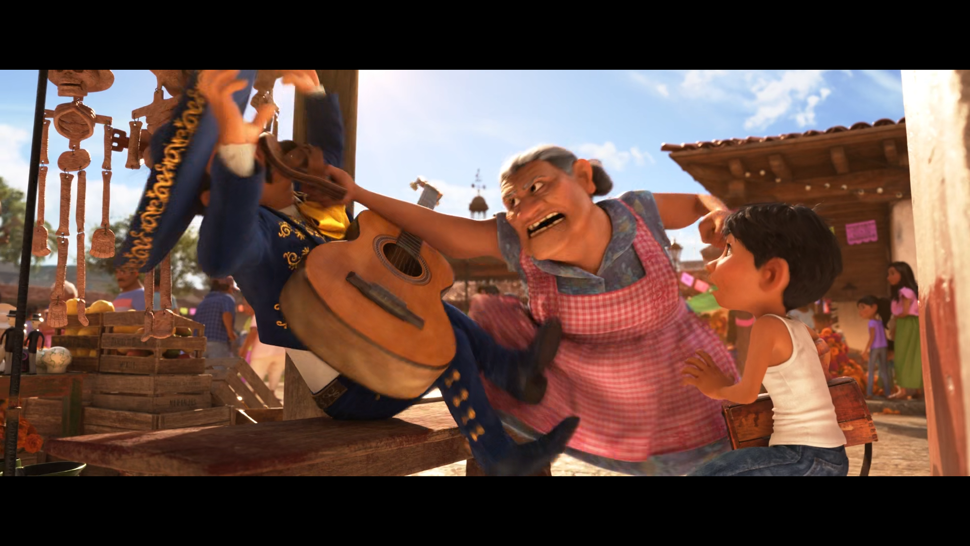 The first section of the film sets up a few things about the family. First, that no one is allowed to talk about the musician that left the family. The only evidence that he ever existed is a family picture in which his head is torn out. Second, that no one is allowed to listen to music, play music, or associate with musicians. Finally, that Miguel loves music, and feels like an outsider in his family.
