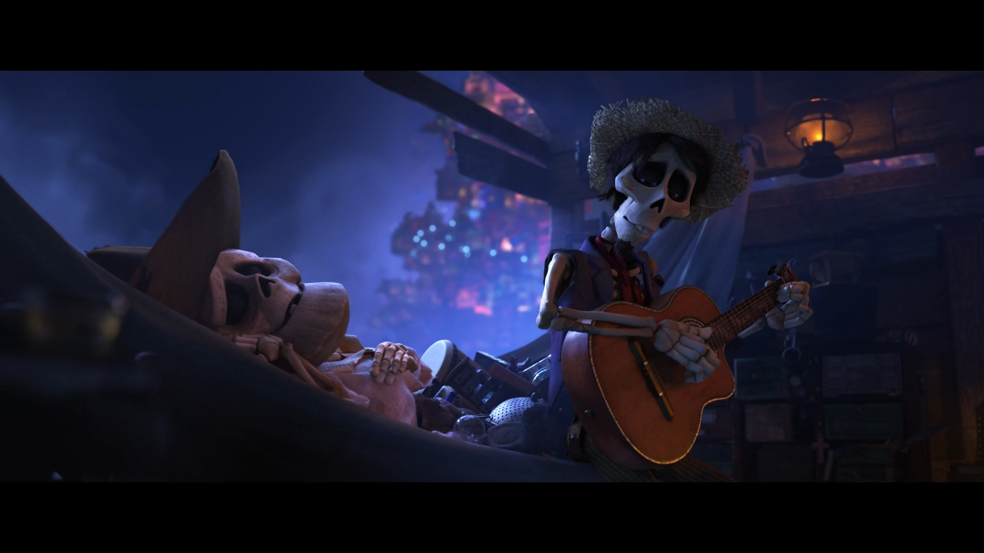 In a heated moment, Miguel’s grandmother finds his guitar and smashes it, leading him to run away, hating his family. In order to get into the music competition in the square he needs a new guitar, and realizes that DLC’s famous guitar is in the cemetery in his tomb.