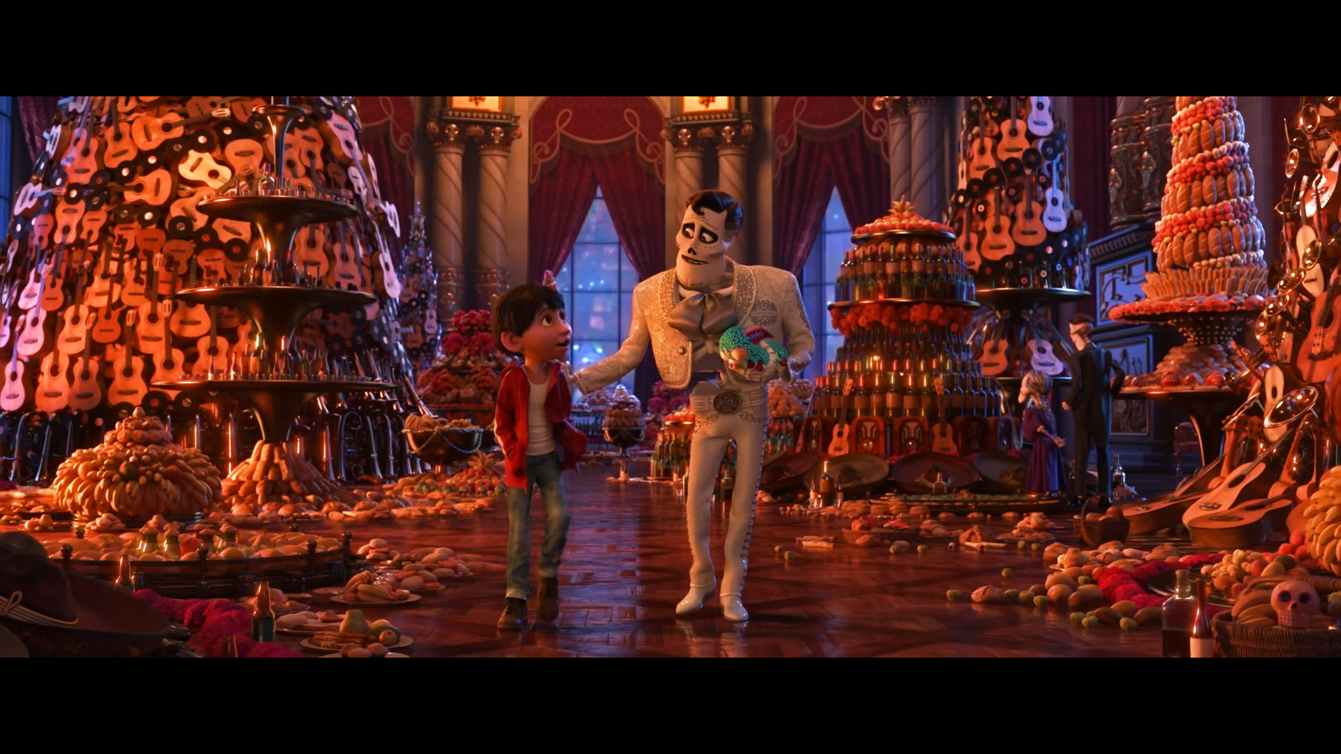 Eventually, Miguel manages to get into DLC’s party, and introduces himself. DLC is surprised, but accepts him, until Hector arrives. DLC is taken aback, and we learn the truth about Hector. He worked with DLC early in his career as a songwriter. Eventually, Hector wanted to go home to his family, but DLC knew he couldn’t make it without him. He poisoned Hector and he died on the way to the train station. DLC took his guitar, and songbook, stealing all of the songs that would make him famous, including one called Remember Me, which would be his best remembered.